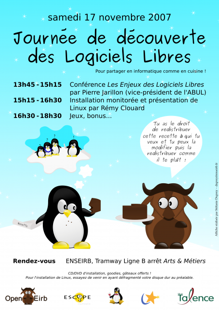 Le 17 novembre 2007, l’ABUL, Esc@pe (l’association informatique de l’école de management de Bordeaux) et OpenEirb (le club logiciel libre de l’ENSEIRB) co-organisent une journée de découverte des logiciels libres à l’occasion de l’install party Mandriva mondiale.